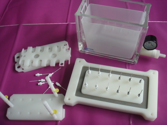 Mediwax固相萃取裝置可實現(xiàn)連續(xù)的樣品萃取和過濾,簡化復雜的樣品預處理過程并節(jié)約時間。整套裝置含有一個透明玻璃槽和頂蓋,可通過抽真空控制樣品流過SPE小柱實現(xiàn)萃取程序。通過調(diào)整玻璃槽里面的支架可容納不同規(guī)格的樣品收集管,包括玻璃或塑料試管、自動樣品瓶、容量瓶以及錐形瓶等,洗脫液通過選擇聚丙烯(PP)或不銹鋼導向針以及防交叉污染的特氟?。?/span>Teflon)連接管直接引入樣品收集管。12位裝置附贈一個聚丙烯(PP)廢液槽,用于操作中收集廢液,可簡化樣品處理過程中廢液的處理以及保持玻璃槽內(nèi)潔凈的環(huán)境。