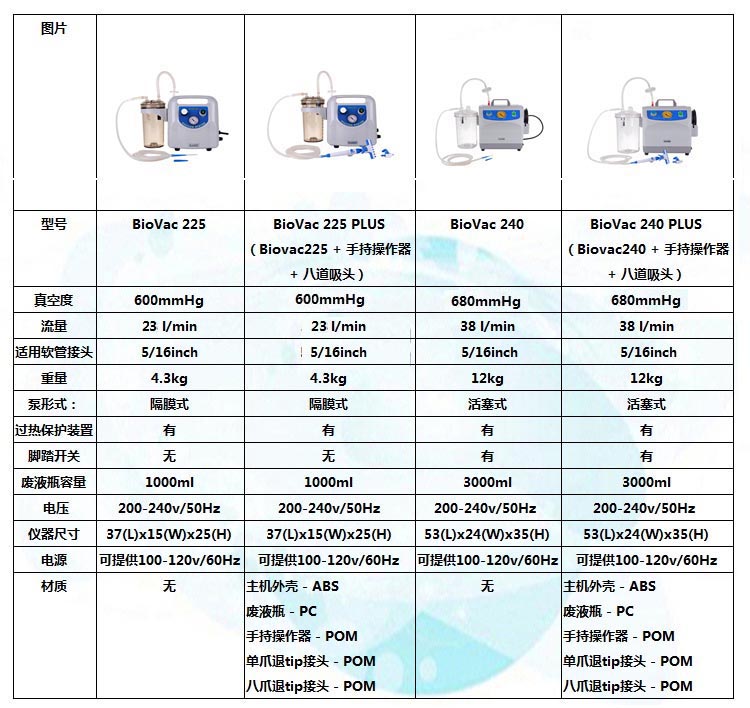 Biovac240細胞培養(yǎng)抽吸真空泵基本規(guī)格 (220V/50Hz):